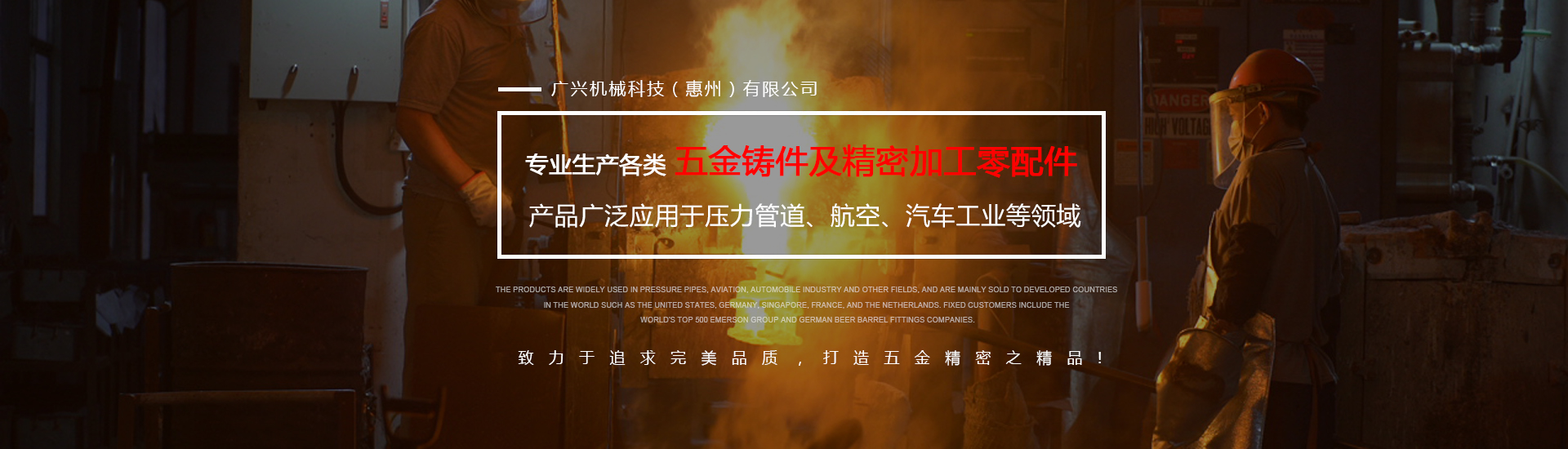 公司專業(yè)生產(chǎn)各類五金鑄件及精密加工零配件,可熔煉材質(zhì)為全系列不銹鋼及碳鋼,主要生產(chǎn)材質(zhì)有304316316L17-4430409等,年生產(chǎn)各種不銹鋼鑄件1000余噸。產(chǎn)品廣泛應(yīng)用于壓力管道、航空、汽車工業(yè)等領(lǐng)域,主要銷往美國、德國、新加坡、法國、荷蘭等世界發(fā)達(dá)國家,固定客戶有世界500強(qiáng)艾默生集團(tuán)及德國啤酒桶配件公司。